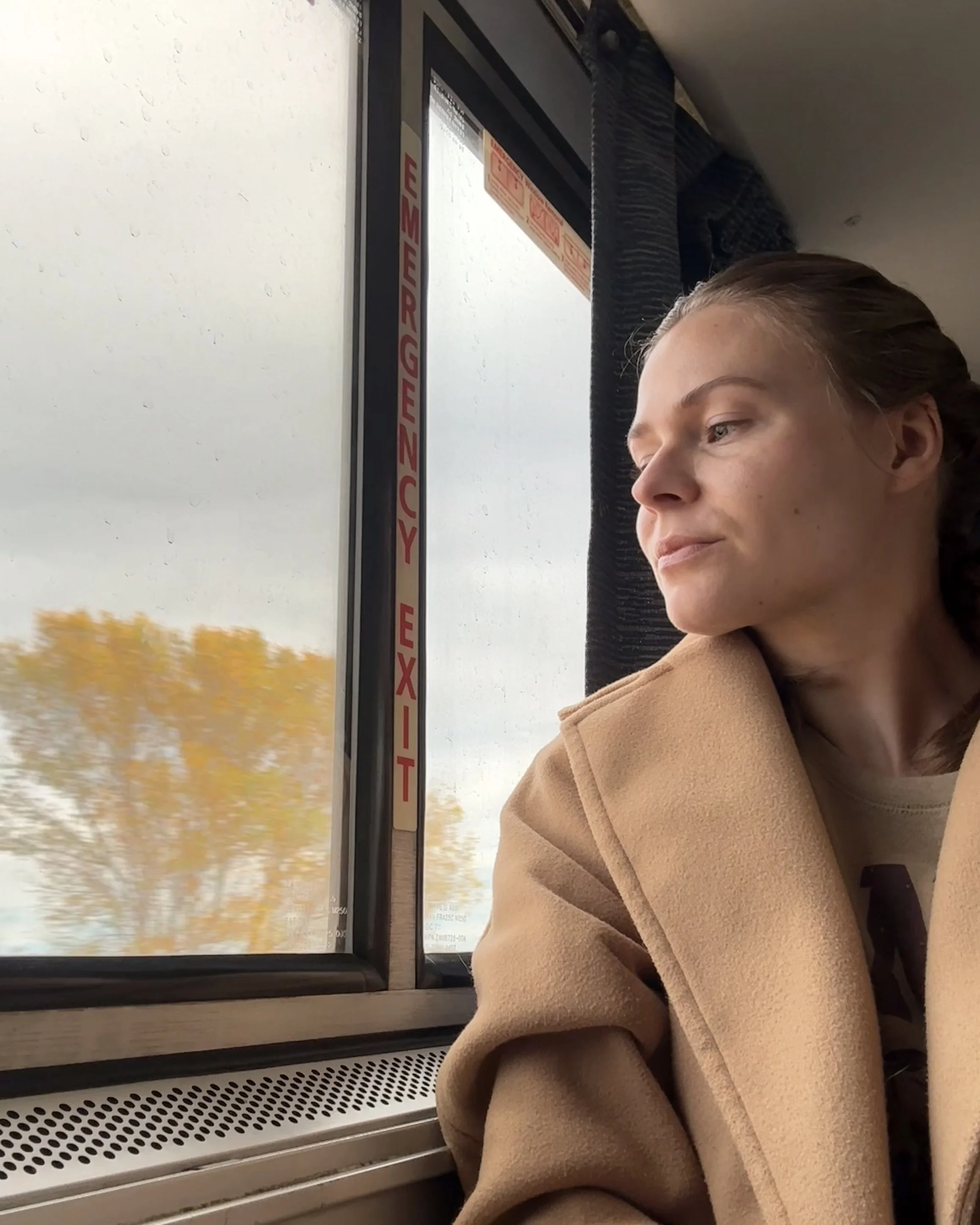 This train ride was different, though. 31-year-old Ruth felt relaxed. Confident. Excited. Fully prepared to find the dining car when necessary. Once I stowed my luggage and settled into my seat, I put in my earbuds and played Taylor Swift’s The Life of a Showgirl , which had come out that very day and felt like a treat. As the train began to move, I watched the sun rise over the flat prairie, Opalite playing through my headphones, the whole sky glowing orange.