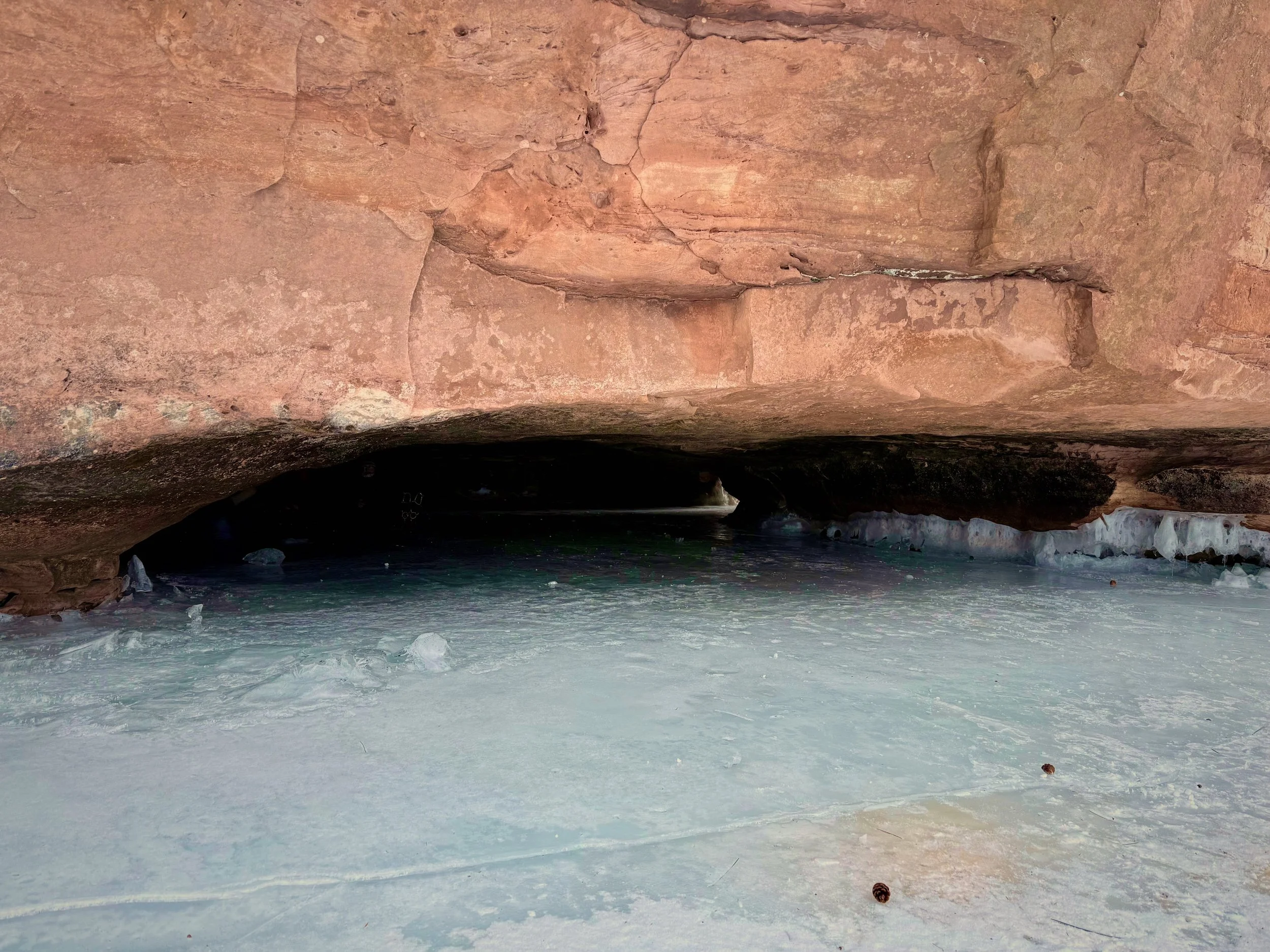The tour company’s website had shown dazzling frozen formations—sculptural, glittering, perfectly framed in sunset light. But what I quickly came to understand was that the “ice caves” weren’t really caves at all. For the most part, they were stretches of shoreline dotted with frozen waterfalls.