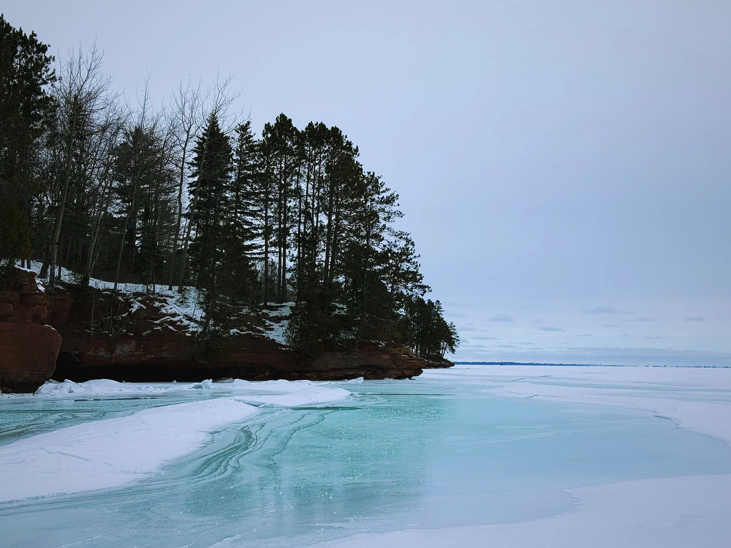 The night was crisp and clear. Stars winked overhead in the unpolluted sky, framed by tall pines that pierced the blue-black void. Somewhere, very near in the darkness, Lake Superior loomed like a ghost or an ill-kept secret. A massive, moving spirit made of equal parts ferocity and beauty. I would see her tomorrow on the guided ice cave tour I had booked weeks ago.